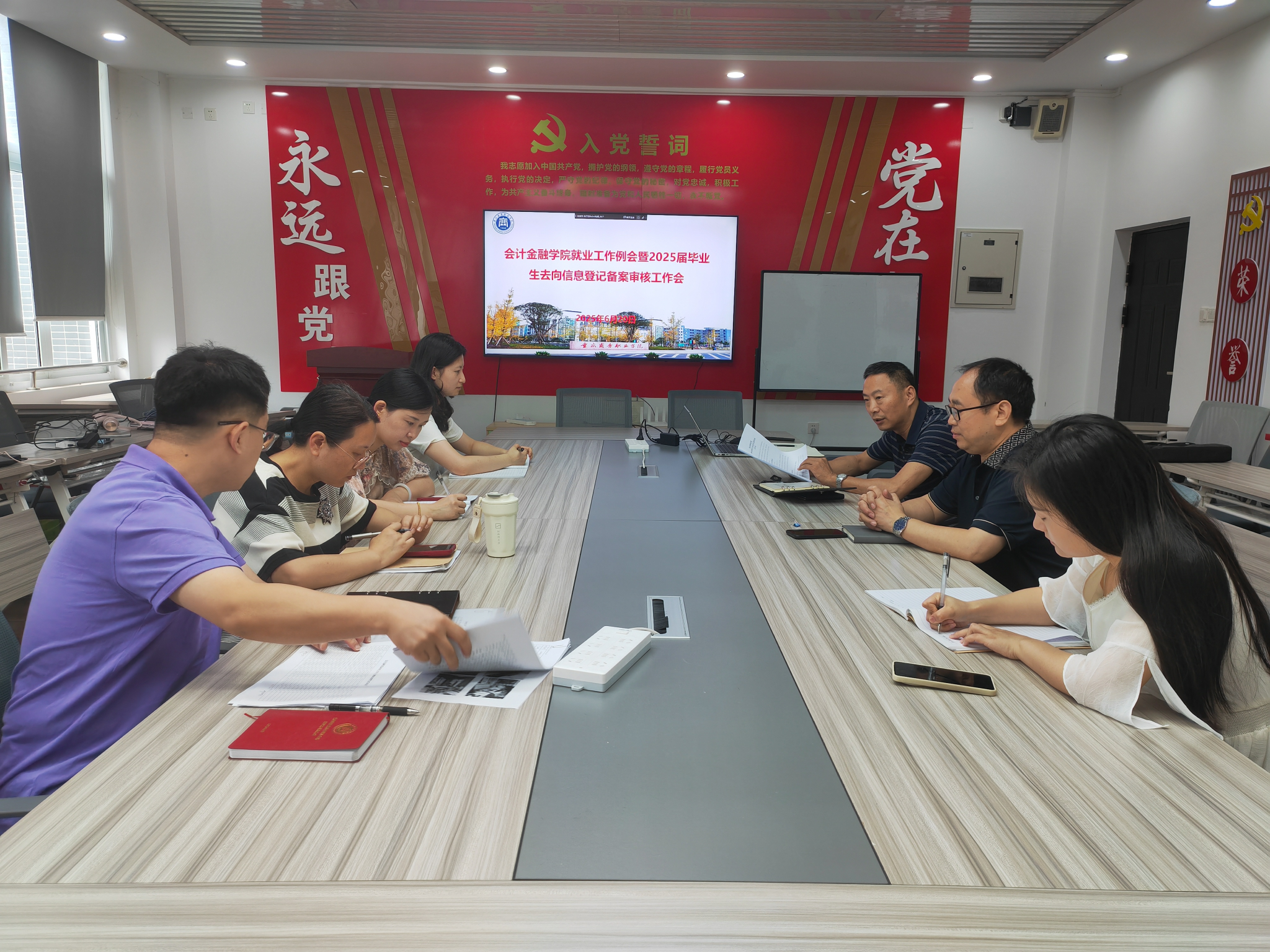 6月20日,会计金融学院在2508召开了就业工作例会暨2025届毕业生去向信息登记备案审核工作会,会计金融学院领导班子、学团办主任、就业干事和2025届毕业班辅导员参加,会议由党总支副书记徐正义主持。