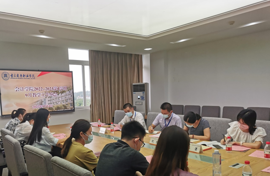 2022年9月14日下午,会计学院在学校第五会议室召开了9月教学工作例会,就本学期的教学工作任务、近期教学情况和下阶段工作安排进行了部署和要求。党总支书班子及部分教师代表参加了会议。