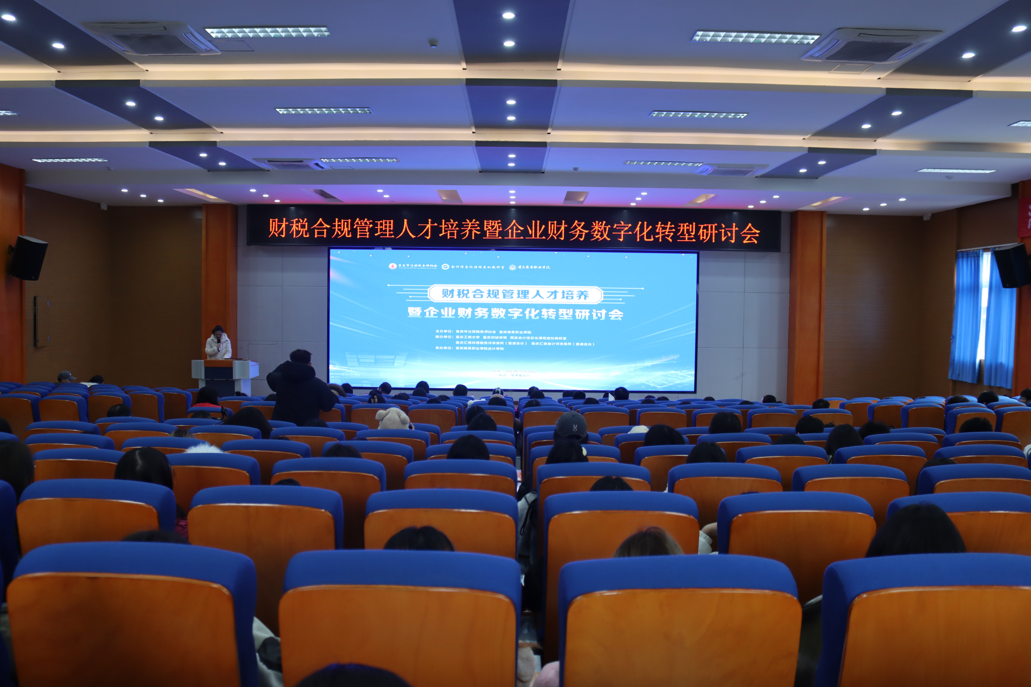 【文/图 尹晓峰 周碧】2023年12月20日,由重庆市注册税务师协会和重庆商务职业学院联合主办的财税合规管理人才培养暨企业财务数字化转型研讨会在学校顺利举行。研讨会分二个阶段进行,第一阶段的主题报告分享,通过“线上+线下”同步进行,现场共有来自重庆工商大学、重庆理工大学、重庆财经学院、国家会计信息化课程虚拟教研室、重庆汇博烨煜税务师事务所、重庆汇鼎会计师事务所等有关单位、企业嘉宾及师生共300余人参加,在线人数600余人。会议由我校会计学院党总支书记、院长沈静主持,重庆市注册税务师协会党支部书记、副会长赵忻,学校党委委员、副院长贾小波教授受邀出席会议并致辞。