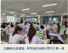 2021年9月5日,重庆商务职业学院丁谦副院长,会计学院沈静院长走进3407,认真聆听会计学院姚珩老师的《税法》“开学第一课”,对课堂进行督教督学。
