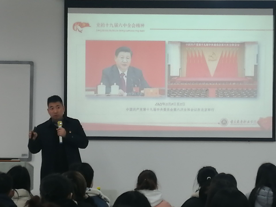 2022年1月3日,马克思主义学院邓龙建书记在2403教室为会计学院90余名学生代表作十九届六中全会精神专题宣讲报告会。报告由会计学院院长沈静主持。