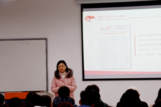 为全面学习贯彻党十九届六中全会精神,进一步凝聚思想共识,激发奋进力量,会计学院院长沈静同志于2021年12月30日18:00在2303教室面向学院100余名学生骨干开展党的十九届六中全会精神宣讲。