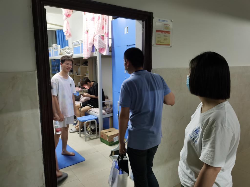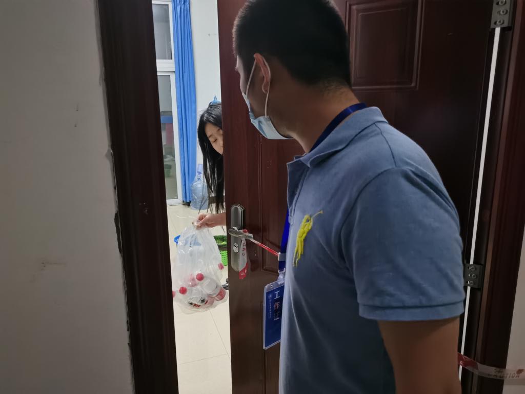 3月18日晚,会计学院院长沈静、总支副书记陈灵凌和志愿者们一同为居寝隔离学生送餐、送水,慰问因疫情隔离在寝的同学们,关心他们身心健康,了解隔离学生学习生活和心理健康状况。(图:向光勤,杨益,文:周丹,审核:陈灵凌)