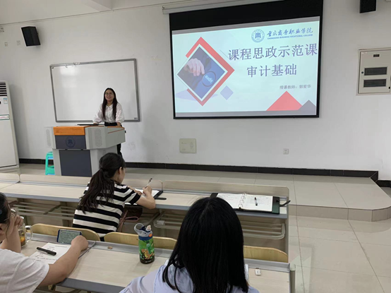 根据学校“课程思政”示范课活动要求,会计学院坚持推进“课程思政”示范课建设和示范课堂打造。本学期共安排4次示范课。其中郭爱华老师讲解的《审计风险》把专业课程理论知识与“诚信”、“公正”的核心价值观有机融合,在专业知识讲授的过程中帮助大家建立起“知敬畏、存戒惧、守底线”的高度自觉性。廖雪言老师讲解的《所得税》在授课过程中,将疫情期间个人所得税的税收优惠政策进行汇总整理,以增强学生的民族认同感和责任感。马箫老师讲解的《创新创业教育》讲到创业机会的选择时强调创业选择不但要找准风口,也要找准国家和社会需要。孙媛媛老师讲解的《会计基础》围绕“对账”这一内容教学中,引导学生进行账证、账证核对,从账证、账账相符中,确保账簿记录的正确性,在课堂教学中,让学生领悟到会计工作需要耐心专注、精益求精的匠心精神。