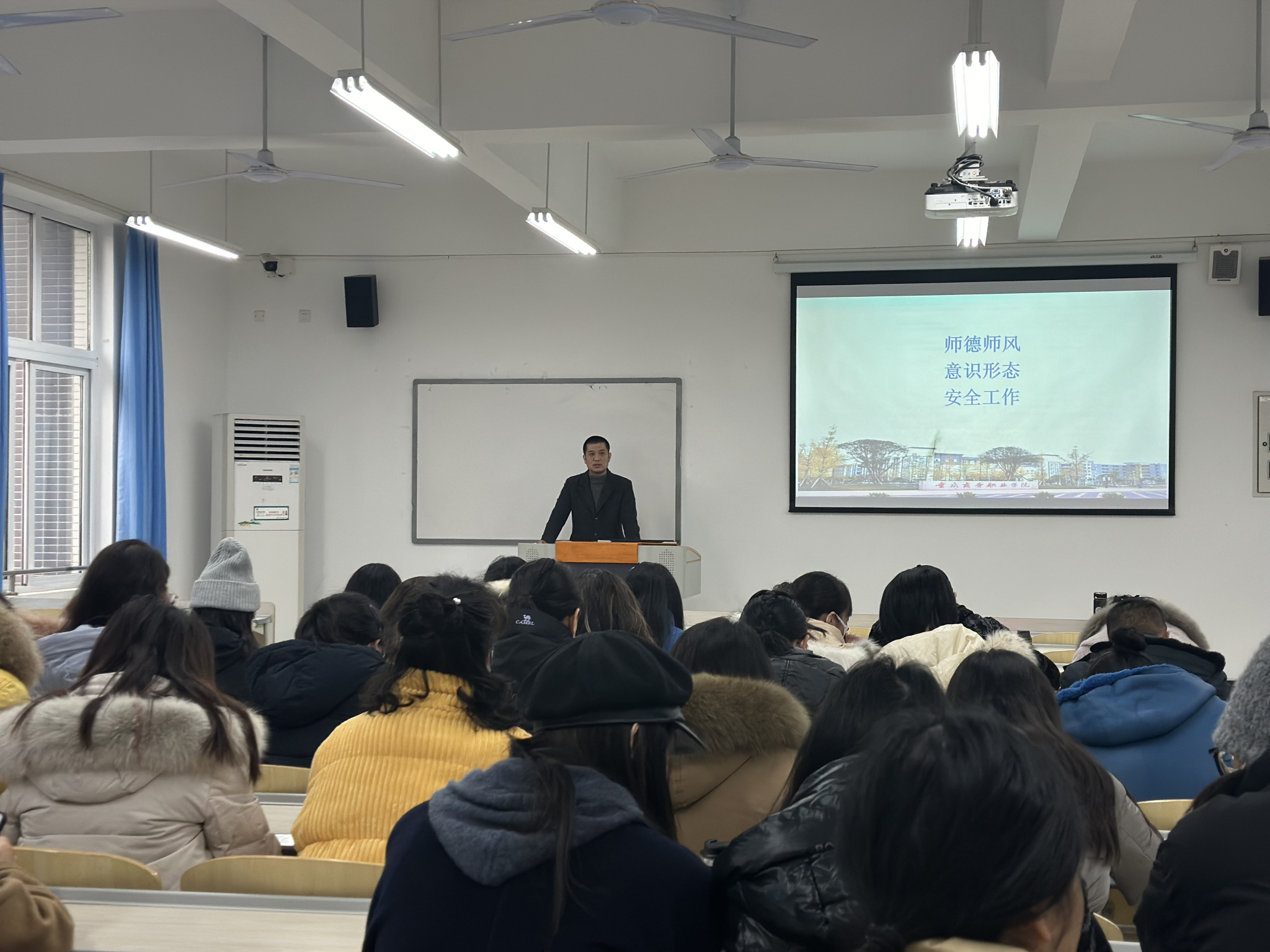 会上,党总支副书记陈灵凌就开学安全、师德师风教育、意识形态等重点工作进行强调。以近期“南京火灾”、“贵州山火”等事件进行了警示,提醒全院教职工要注意防范,注意电动车、办公室等用电安全。同时针对社会热点事件对全体教职工进行了意识形态教育,提醒教师注意学生诚信教育,谨记教师身份,加强课堂管理,对实习学生及时进行关怀指导,守好底线,不触红线。