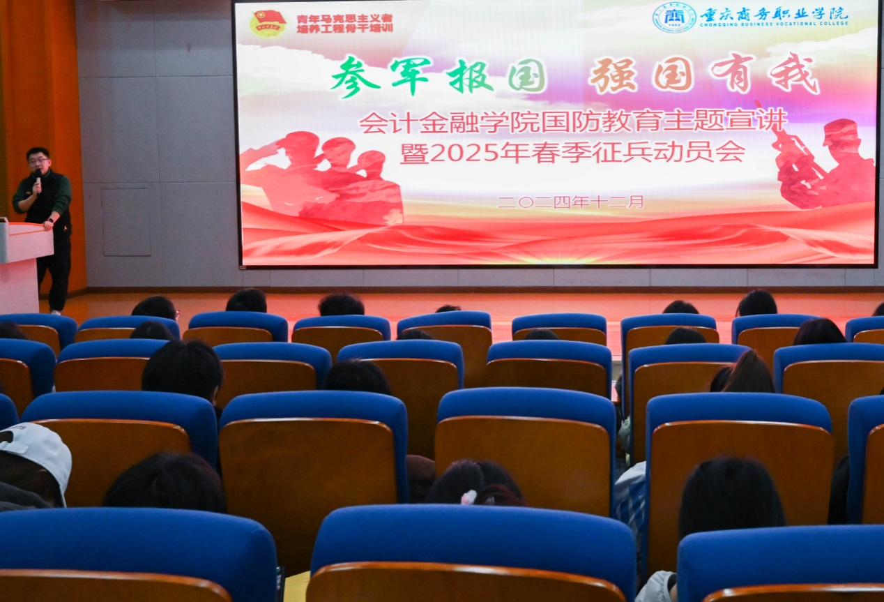 为全面实施习近平强军思想,有效推进“一年两次征兵工作”,进一步优化我院2025年征兵宣传工作,强化青年学子的国防观念和忧患意识,凝聚关心国防、热爱国防、建设国防、保卫国防的思想共识。12月,我院组织开展征兵动员大会和征兵宣传主题班会,旨在提升大学生参军报国的热情,激励广大适龄青年学子积极投身国防建设。