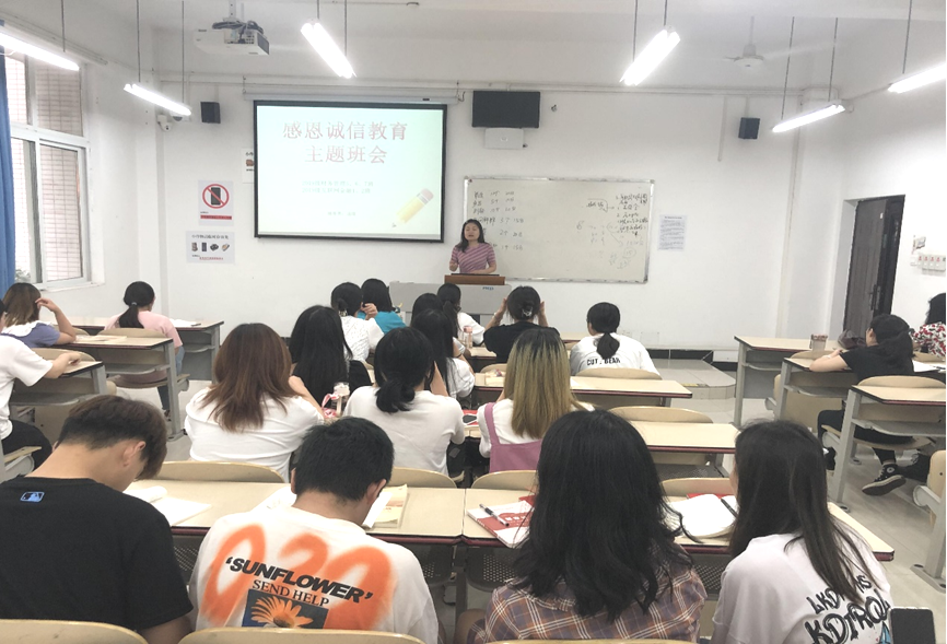 毕业班开展的主题班会将感恩与诚信教育紧密结合。首先,辅导员介绍了国家助学贷款的还款流程、方式以及逾期还款的后果,通过真实案例,让毕业生深刻认识到诚信还贷的重要性。其次,通过播放感恩诚信主题微电影、开展趣味问答,引导学生思考感恩和诚信意义。最后,辅导员结合学业与生活案例,强调感恩和诚信的重要性,让同学们在感恩中践行诚信,在诚信中传递感恩。