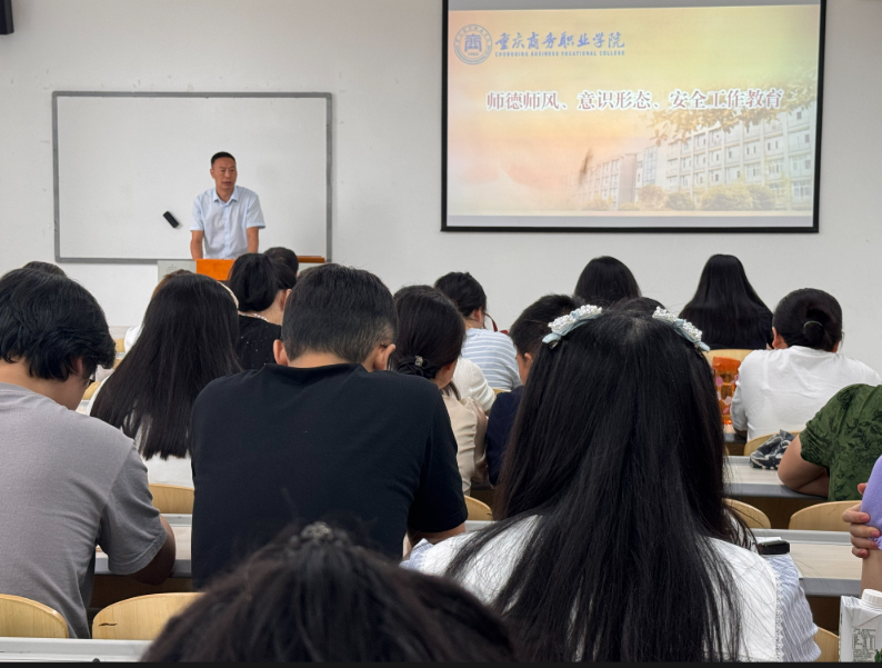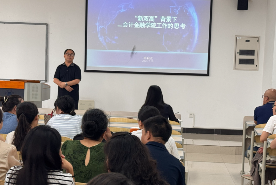冉启江为教职工作“‘新双高’背景下会计金融学院工作思考”的讲座。他从学院发展的理解、学院基本情况、具体举措、如何有效推动四个方面进行深入分析,帮助全院教师理清发展思路,明确努力方向。此外,冉书记还通报了学校最近的人事变动情况,并对出国(境)教职工进行了安全教育。他要求全院教师在暑期持续做好毕业生去向落实工作,助力毕业生顺利就业。