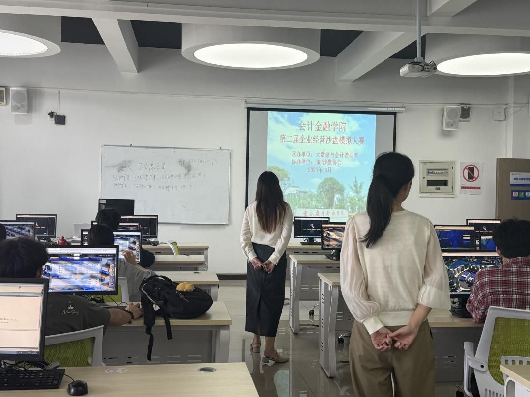 为深入贯彻落实“职教二十条”,健全技能人才培养、使用、评价、激励制度,为广大技能人才搭建展示精湛技能、相互切磋技艺的平台,切实推动“以赛促教、以赛促培、以赛促评、以赛促建”,会计金融学院于2025年10月15日下午2点,举办了第二届企业经营沙盘模拟竞赛。本次赛事由大数据与会计教研室承办、ERP沙盘协会协办,旨在通过专业竞赛强化学生专业技能与综合素质。