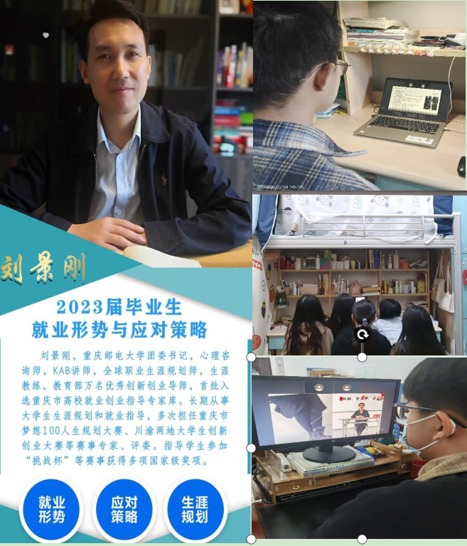 此次专题讲座由重庆邮电大学团委书记、心理咨询师、KAB讲师、全球职业生涯规划师、生涯教练、教育部万名优秀创新创业导师、首批入选重庆市高校就业创业指导专家库专家刘景刚讲授,在校学习800余人次。刘景刚老师就当前大学生就业形势,围绕如何增强自身核心竞争力、如何提升面试技巧、如何提高综合能力等方面深入浅出的为毕业生分析了今后就业中所面临的问题以及解决思路,引导毕业生积极择业有效就业,及时调整就业心态,强化自我定位,多渠道搜集就业信息,提升就业竞争力。