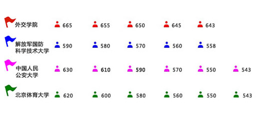 4.顺序志愿投档图解 如图所示。顺序志愿的投档原则是“志愿优先,从高分到低分”,投档时,对选报同一志愿院校的考生按院校确定的录取原则、调档比例从高分到低分进行投档,也就是说每所院校各排各的队。