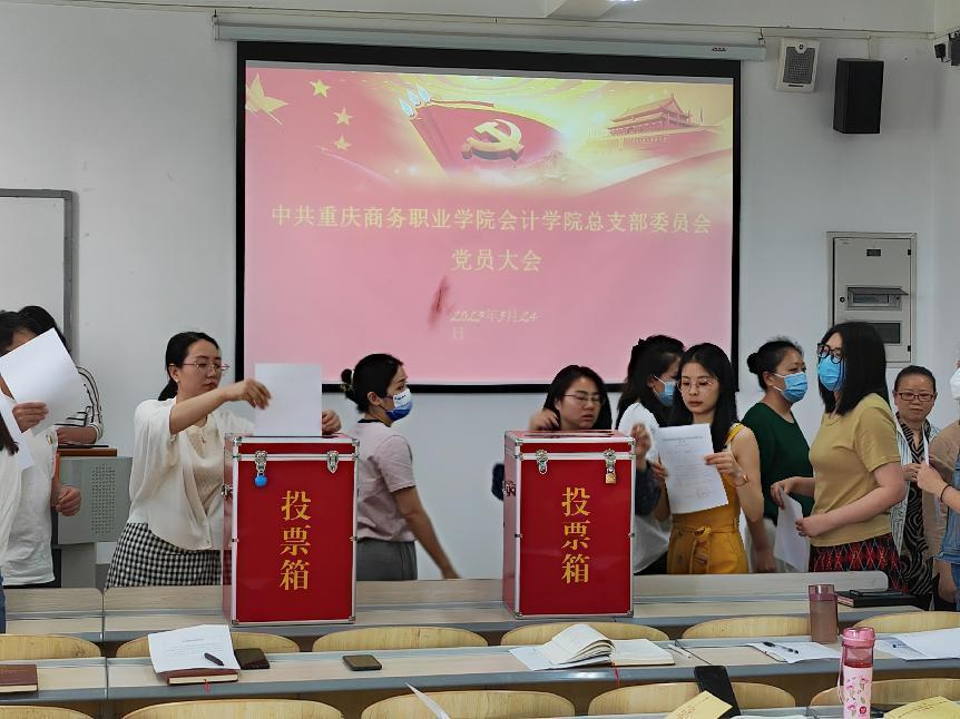 会议在庄严的国歌中拉开序幕,首先审议通过了《中共重庆商务职业学院会计学院总支部委员会党员大会选举办法》;表决通过了推荐大会监票员、计票员名单;最后,进行投票推荐。