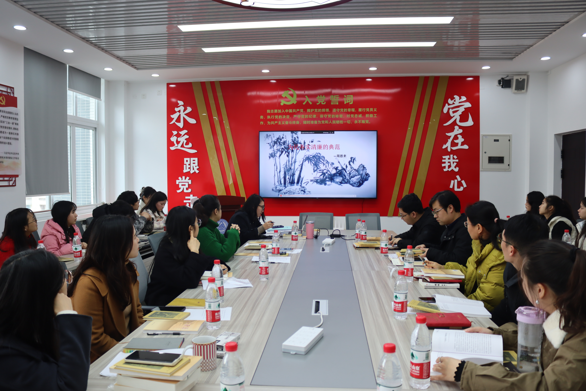 在活动中,党总支纪检委员马箫带领大家领读了《共产党宣言》中的部分内容,全文贯穿了马克思主义的历史观,马克思主义的诞生的重要标志;党总支宣传委员周碧分享了周恩来的“三次付费”“十条家规”红色经典故事内容,告诫我们如何掌好权、用好权,如何过好权力关、亲情关。