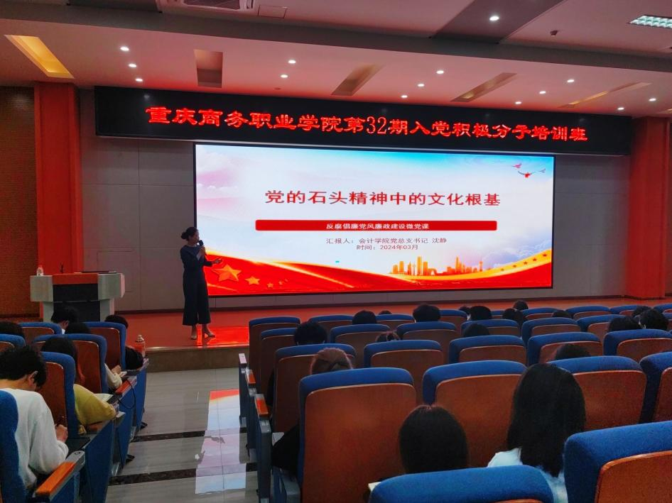 【文/图 尹晓峰】2024年4月23日,会计学院党总支书记、院长沈静受邀为党校第32期入党积极分子讲授了《党的石头精神中的文化根基》专题党课,200余名入党积极分子参加专题学习。