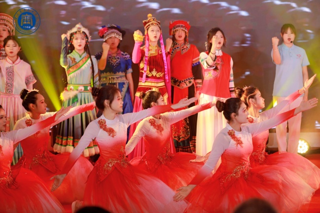 我院选送的情景歌舞《我宣誓》以民族团结为主题,融入合唱、舞蹈、情景表演等形式,以各年代入党誓词呈现为切入点,分别展现了抗日英雄赵一曼、老山勇士李海欣和三支一扶志愿者对党忠诚、牺牲自我、努力进取的光辉群像。通过《我宣誓》这首以入党誓词为歌词,融合《中华人民共和国国歌》、《国际歌》旋律元素的歌曲,唱出各民族党员对党的坚定信仰和无限深情。参演的近40名师生身着民族服装引吭高歌,嘹亮的歌声、激烈的旋律让现场党员感受到强烈的自豪感和自信心。