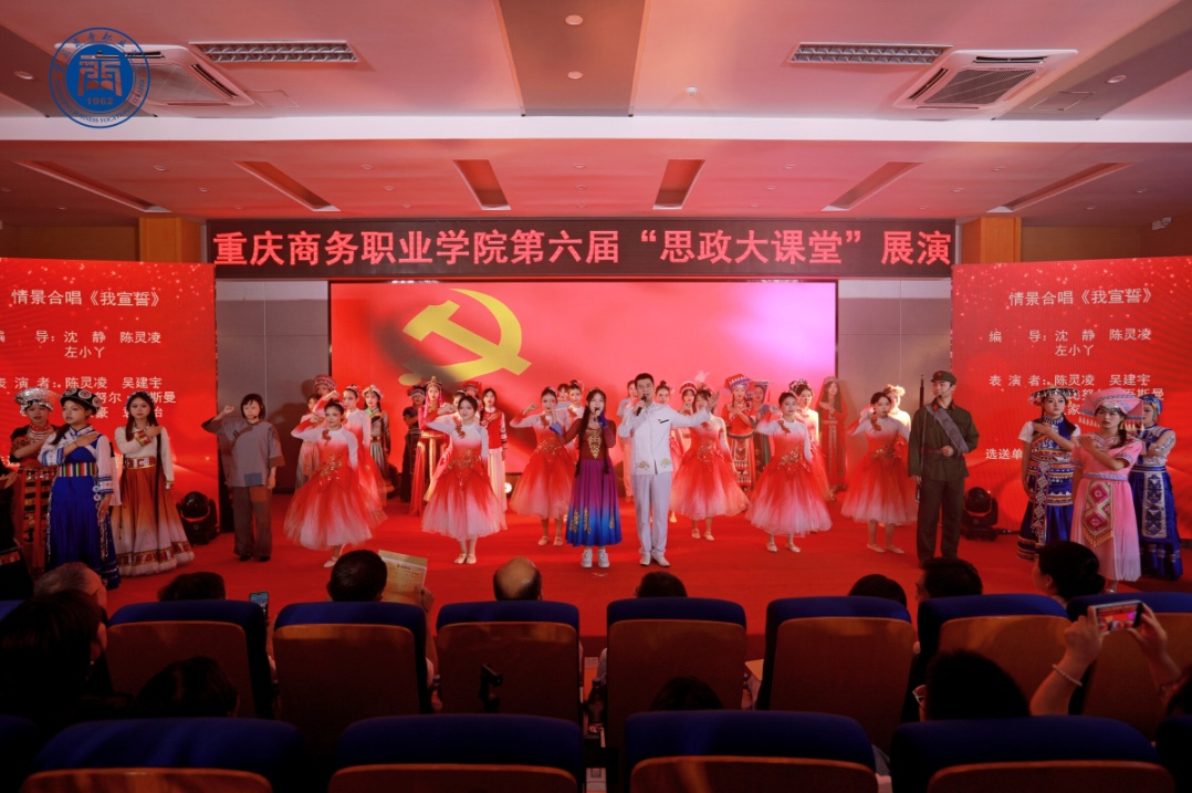 【文/图 邢全超】6月28日下午,重庆商务职业学院第六届“思政大课堂”展演暨“七一”表彰活动在学校学术报告厅浓情上演,我院选送的情景歌舞节目《我宣誓》精彩亮相,获得一致好评。