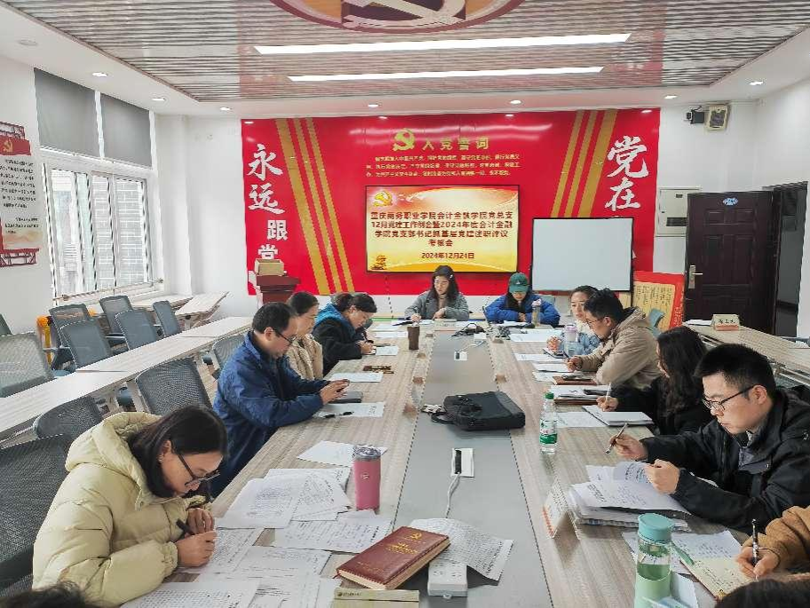 【文/图 尹晓峰】12月24日,学院在2508党建工作室召开12月党建工作例会2024年度党支部书记抓基层党建述职评议考核会。原会计学院党总支书记沈静主持会议,各党支部书记、委员、专职组织员参加会议。