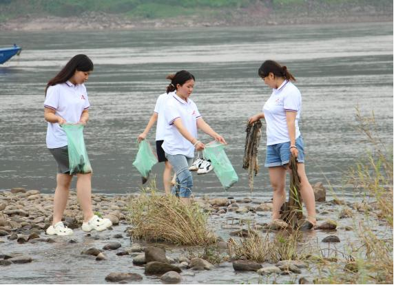 同饮一江水 共护母亲河。为响应川渝“河小青”长江上游保护行动,实践团的小伙伴们来到了长江流域,认真清理岸边的烟头、纸屑和塑料垃圾等杂物,以实际行传递志愿者服务精神,带动广大群众一起保护河道环境,构建“水清、河畅、岸绿、景美”的良好生态环境,倡导环保观念,宣传国家经济的可持续发展战略。