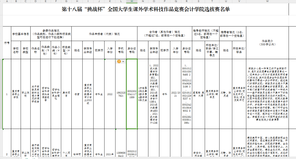 赛事之初,学院领导高度重视学校“挑战杯”备赛工作,党总支副书记亲自组队指导项目,为比赛师生提振信心。学校不断完善工作机制,依托校赛选拔载体,不断孵化优秀项目并推报参加校赛、市赛,以赛促学、以赛促教、以赛促创,在院内营造了浓厚的学术科技创新氛围,引导和激励广大青年学子不断突破自我,争创佳绩。本次院级选拔赛根据综合得分,推送了《关于后疫情时代重庆临时核酸检测点功能优化调研报告》等17个优秀项目。