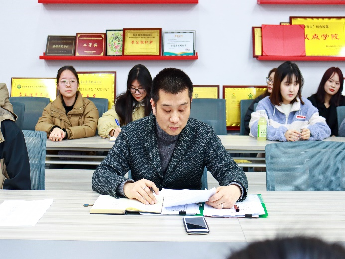 会计学院总支书记邢全超对近期重点工作进行了安排,希望各部门学生干部能够担起责任,做好本职工作,部门之间互帮互助,促进沟通,增进友谊,共同学习,共同进步,团结协作。