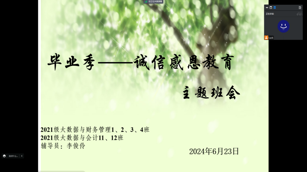 各班级通过广泛宣传国家资助政策,学习诚信相关案例,引导同学以诚待人,以信立身。内容涵盖资助诚信、考试诚信、创业诚信、求职诚信、金融诚信等方面,促使学生树立诚信观念、增强法律意识,有效将诚信教育转化为大学生的自觉素养与行为。毕业班级开展毕业生贷款还款教育,及时履行国家助学贷款合同,重点强调征信的重要性和失信的严重后果,引导在校学生树立良好征信观念。