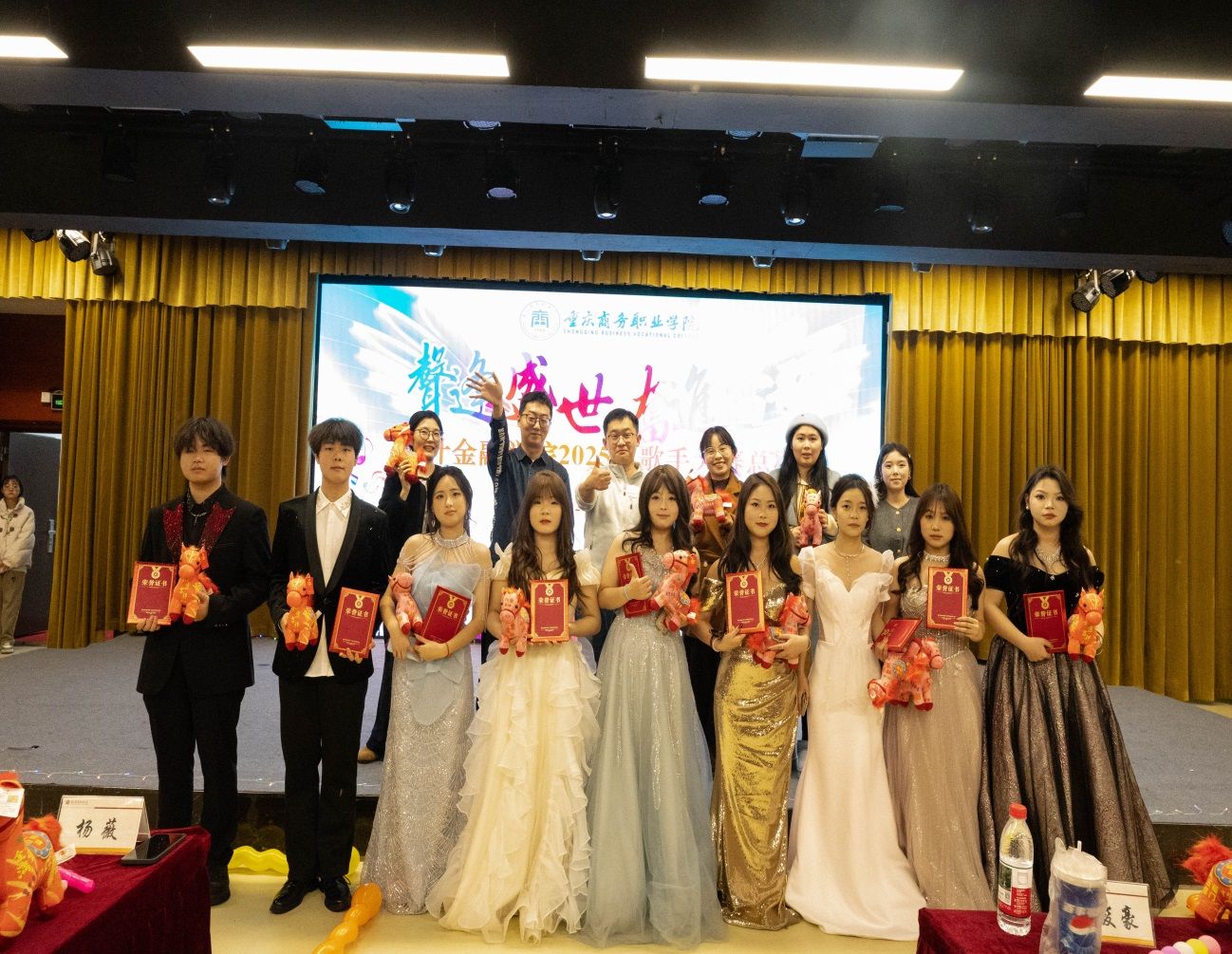 本次比赛邀请了重庆商务职业学院团委副书记杨薇、团委办副主任王瑶、学团活动指导教师冉俊豪、数字媒体学院团总支委员李苗、会计金融学院团总支书记邢全超等多位老师担任评委。比赛设独唱、合唱、晋级比拼三轮环节,采用百分制评分,从节目内容、思想性、表演状态、演唱技巧等六大维度综合评判。