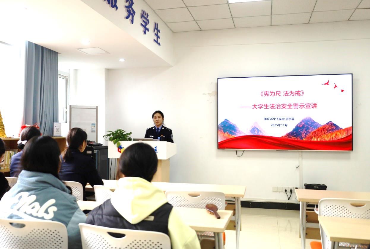 为切实筑牢大学生群体思想根基,提升青年学子安全防范意识与自我保护能力,引导其在青春赛道上坚守法律底线、行稳致远,11月26日,“宪为尺,法为戒——大学生法治安全警示宣讲”的公益活动在北山社区红岩小剧场温情启幕。本次宣讲特邀重庆市女子监狱青兰志愿服务队成员何燕芸主讲,30名学生代表共同接受了一场兼具理论深度与现实警示意义的思想洗礼。