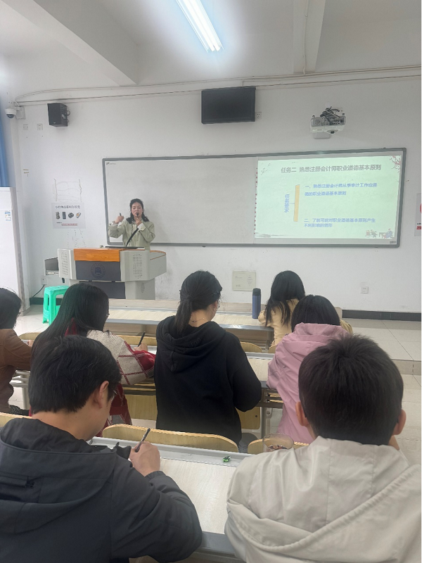 许芳老师以“熟悉注册会计师职业道德基本原则”为教学主题,围绕注册会计师职业道德基本原则、可能对职业道德基本原则产生不利影响的情形等为主要内容展开。教学过程中结合实际案例对职业道德基本原则进行讲解,生动形象地融入课程思政元素,教学目标明确,内容丰富,教学效果良好。