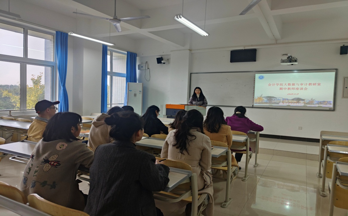 【文/图 钟静】为全面了解本学期课堂教学情况,广泛听取意见和建议,及时发现存在问题、研究解决办法,促进教学质量稳步提高,11月15日,大数据与审计教研室在2323教室组织召开期中教学检查教师座谈会,教研室全体教师参加会议。会议由教研室党支部书记钟静同志主持。