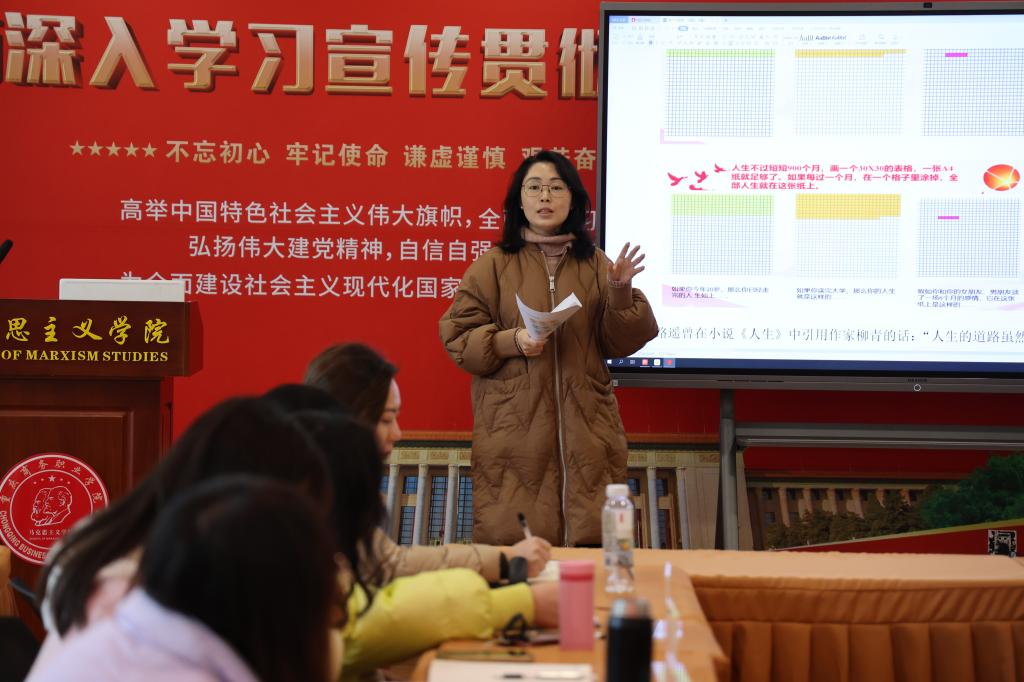 周轶老师老师就专题一《担当复兴大任成就时代新人》从我们所处的新时代、时代新人的责任担当等方面内容展开,并强调在授课过程中注重学生思想道德素质的培育。