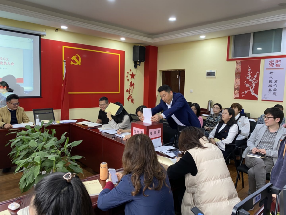 按照《中国共产党章程》、《中国共产党基层组织选举工作条例》有关规定,以及学校《关于同意马克思主义学院党总支部委员会委员选举的批复》等相关文件要求,党员大会选举在国歌声中拉开序幕,依次进行了:通过选举办法、公布候选人名单;介绍候选人情况;推选监票、计票的选举工作人员并经大会表决通过;填写选票,进行投票、计票;宣布选举结果。