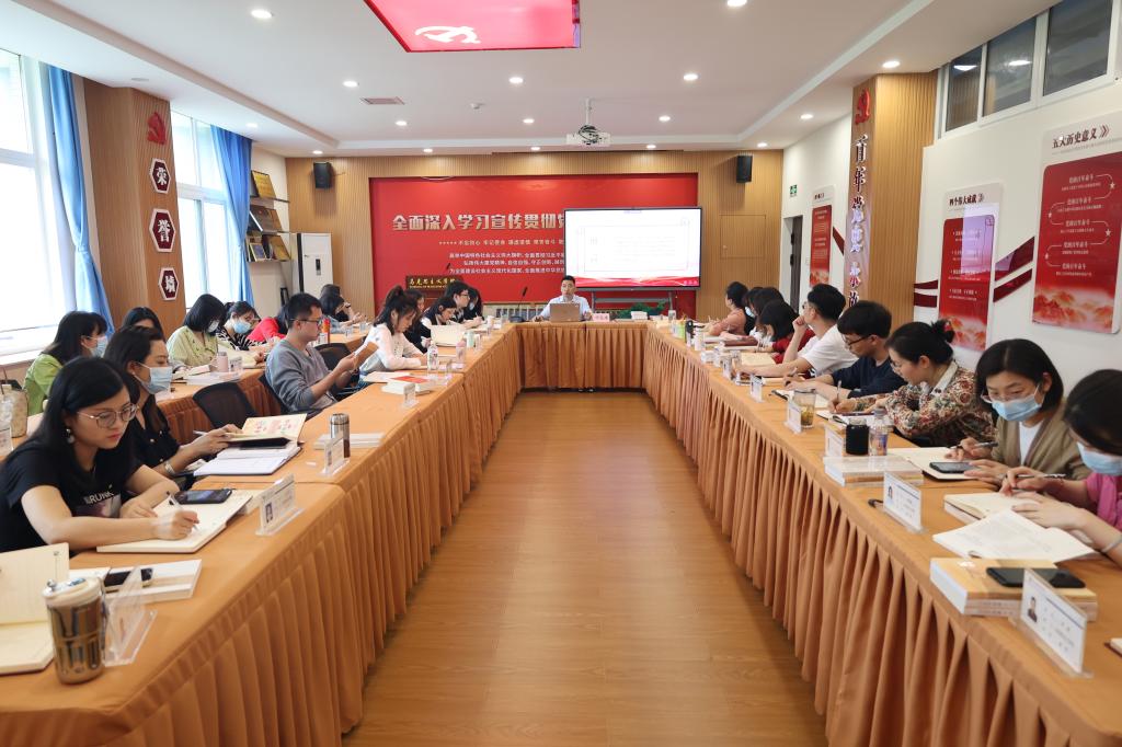 【文/图 顾志飞】为深入贯彻落实学校学习贯彻习近平新时代中国特色社会主义思想主题教育动员部署会精神,5月6日下午,学院党总支书记、院长邓龙建在党建活动室2213开讲专题党课,学院全体教师参加学习。