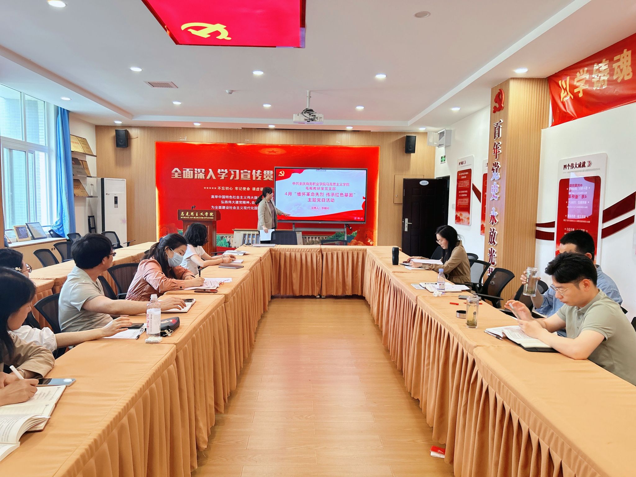 首先,支部书记李娅婷同志带领全体党员同志重温入党誓词。李娅婷同志勉励全体党员要以此次重温入党誓词活动为契机,重温党的光辉历程,牢记共产党员的初心和使命,时刻保持共产党员的先进性,不断提高思想作风、工作作风、组织作风、生活作风和纪律作风。在教育教学工作中,自觉加强党性锻炼,努力提高个人修养,立足本职、不忘初心、赓续奋斗、创先争优。