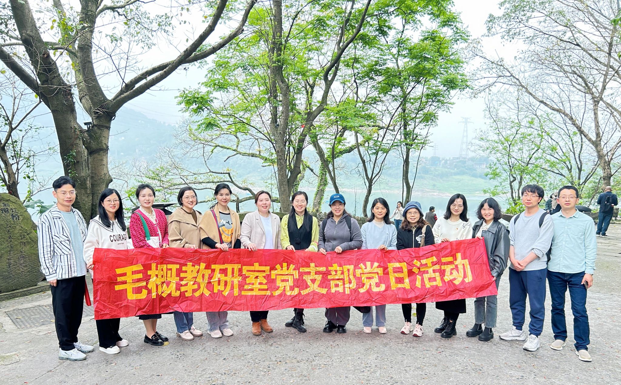 理论学习环节结束后,支部教师一同前往北碚区金刚碑历史文化街区,开展“探寻中华优秀传统文化 观摩乡村振兴文化建设经验”实地走访活动。金刚碑坐落于缙云山下、嘉陵江畔,抗日战争时期,国民政府迁都重庆作为战时陪都,不少国民政府机构内迁至此,一大批著名经济实业家、史学家、文学家、社会活动家也寓居金刚碑。党员同志们在追寻城市历史文脉的过程中,也对重庆市和北碚区的乡村振兴建设有更多了解。近年来,北碚区聚焦建设成渝地区乡村旅游目的地目标,以生态农业为基、田园风光为韵、村落民宅为形、农耕文化为魂,构建起田园都市新图景。