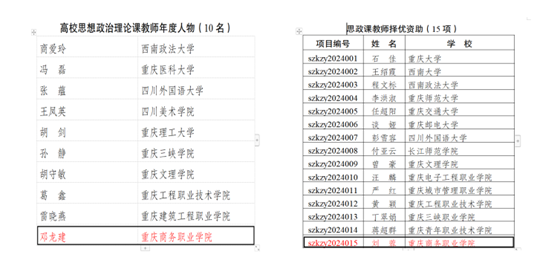 图为邓龙建同志、刘蓉同志入选“高校思想政治理论课教师