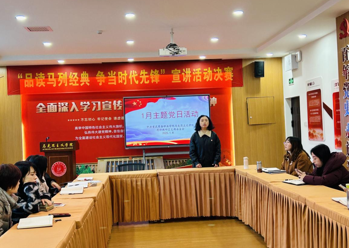 【文/图 龚春燕】为进一步增强全体党员的党性修养和责任意识,激发大家在新的一年里继续拼搏进取、再创佳绩的决心和信心。1月8日下午,马克思主义学院思修教研室党支部在2213党建室开展了“高擎旗帜启新程 接续拼搏再出发”1月主题党日活动。会议由党支部书记向征同志主持,支部全体党员教师参加。