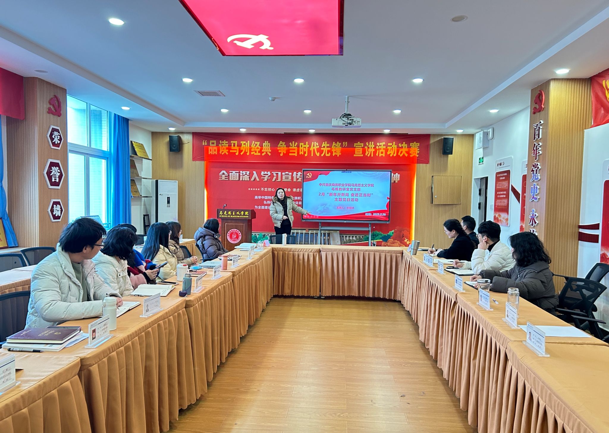 【文/图 顾婷】为激励支部党员以昂扬姿态迎接新学期、新征程,2025年2月26日,马克思主义学院毛概教研室党支部全体党员同志在2213党建工作室开展“新年开新局 奋进正当时”2月主题党日活动。会议由毛概教研室党支部书记李娅婷同志主持,全体支部党员教师参加。