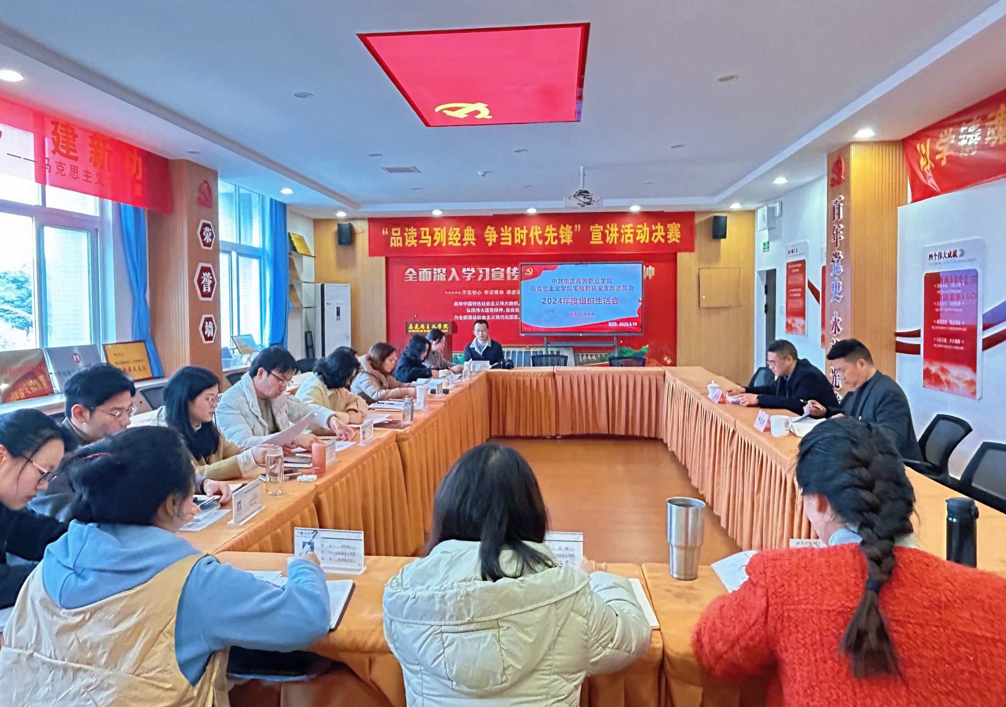 【文/图 顾婷】根据学校党委关于基层党支部召开2024年度组织生活会和开展民主评议党员的通知精神和工作安排,马克思主义学院毛概教研室党支部全体教师于3月12日14:30在2213党建工作室召开2024年度毛概教研室党支部组织生活会。本次会议由党支部书记李娅婷同志主持,学校党委书记江涛同志出席会议并指导工作。