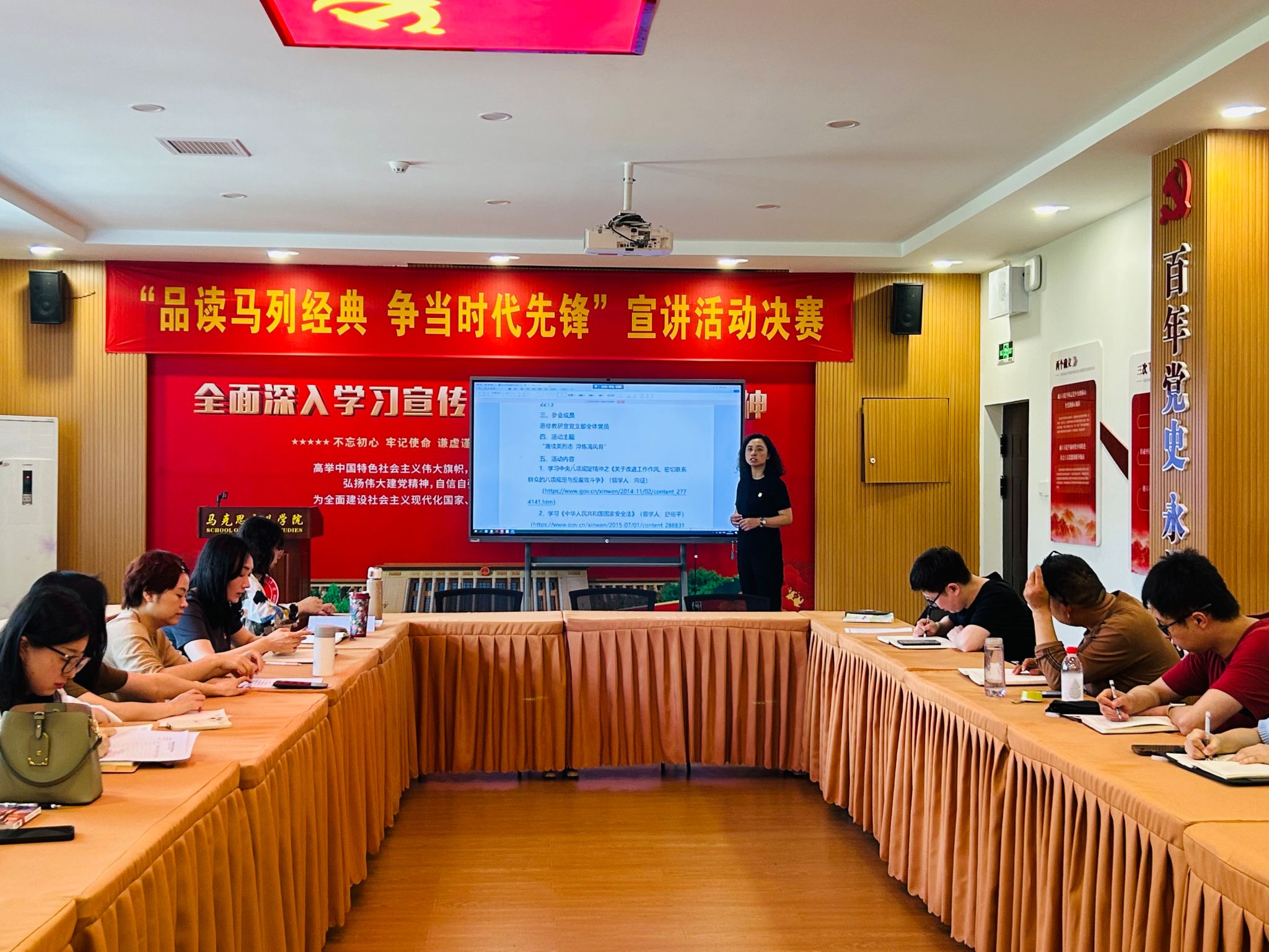 会上,党支部书记向征同志领学《习近平关于加强党的作风建设论述摘编》,舒招平同志领学《求是》杂志发表习近平总书记重要文章《坚持和落实“两个毫不动摇”》,龚春燕同志领学习近平总书记在贵州、云南考察时的重要讲话精神,蒋继红同志领学《求是》杂志发表习近平总书记重要文章《朝着建成科技强国的宏伟目标奋勇前进》,刘俊同志领学中共中央政治局会议精神,杜格同志领学《习近平总书记关于党的建设的重要思想概论》,向丽霞同志领学习近平同志《论教育》。