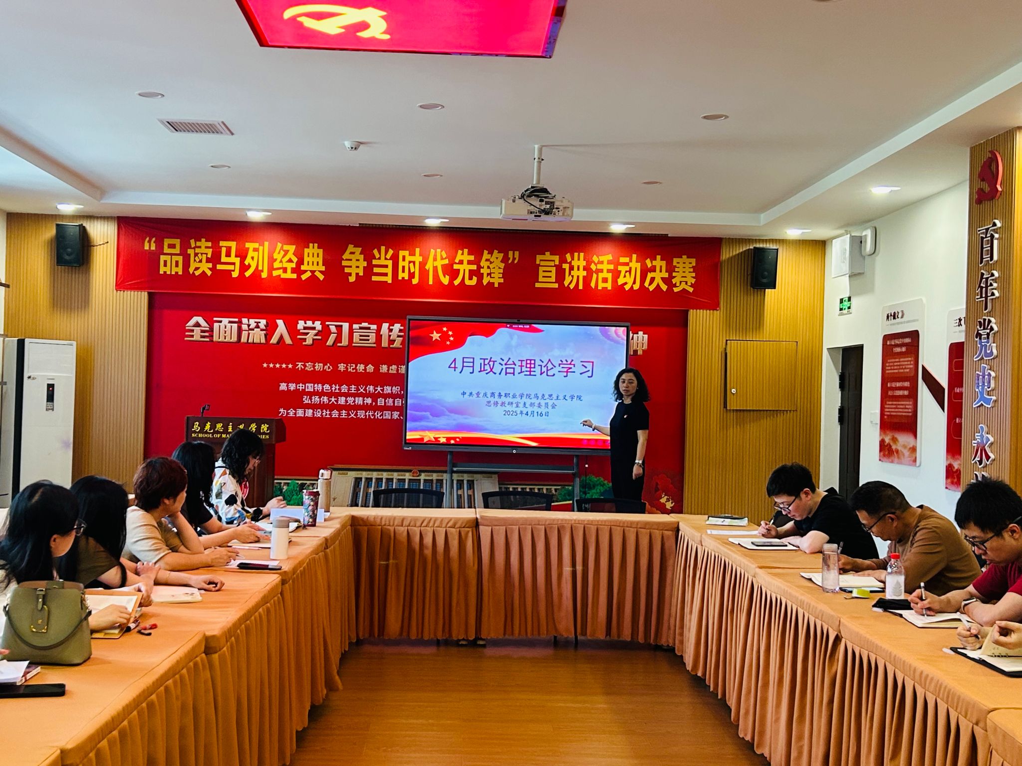 【文/图 龚春燕】为深入贯彻中央八项规定精神学习教育,进一步推进作风建设,营造风清气正的教育环境,4月16日下午,马克思主义学院思修教研室党支部在2213党建室组织开展4月政治理论学习活动。会议由党支部书记向征同志主持,全体支部党员教师参加。