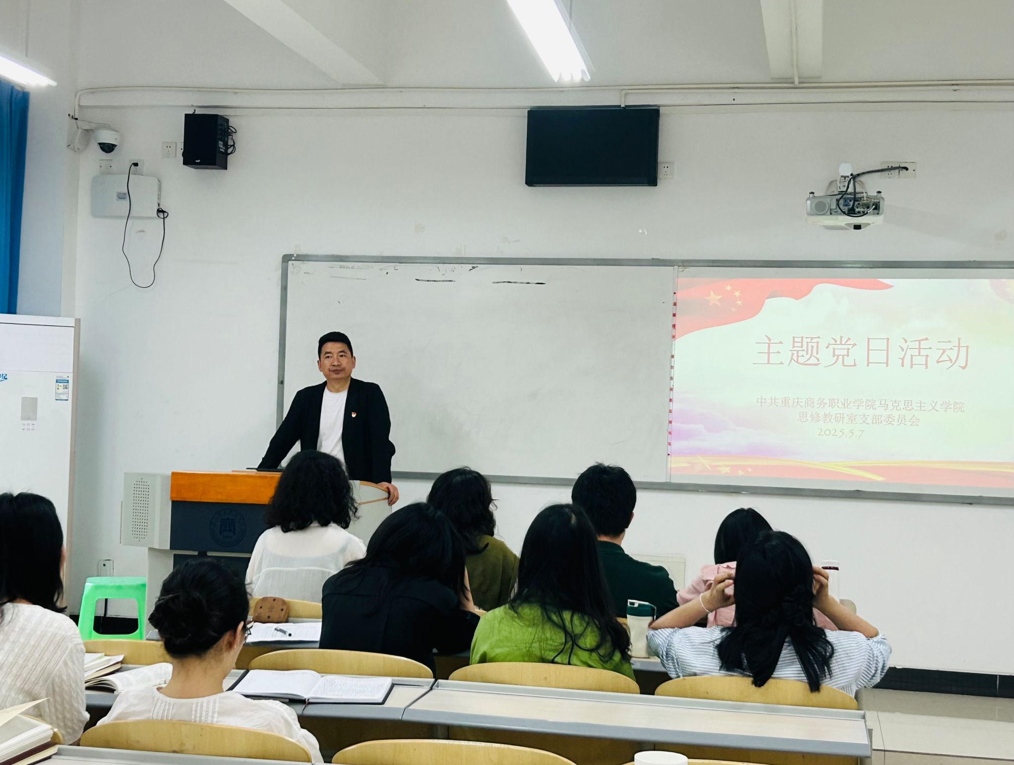 【文/图 龚春燕】为深入学习领会习近平总书记关于加强党的作风建设的重要论述,进一步提升党员教师的政治理论素养,激发党员教师履职担当、干事创业的积极性、主动性和创造性,5月7日下午,马克思主义学院思修教研室党支部在2208教室开展“筑牢作风根基 树立清风正气”5月主题党日活动。会议由党支部书记向征同志主持,党总支书记邓龙建同志出席会议,全体支部党员教师参加。