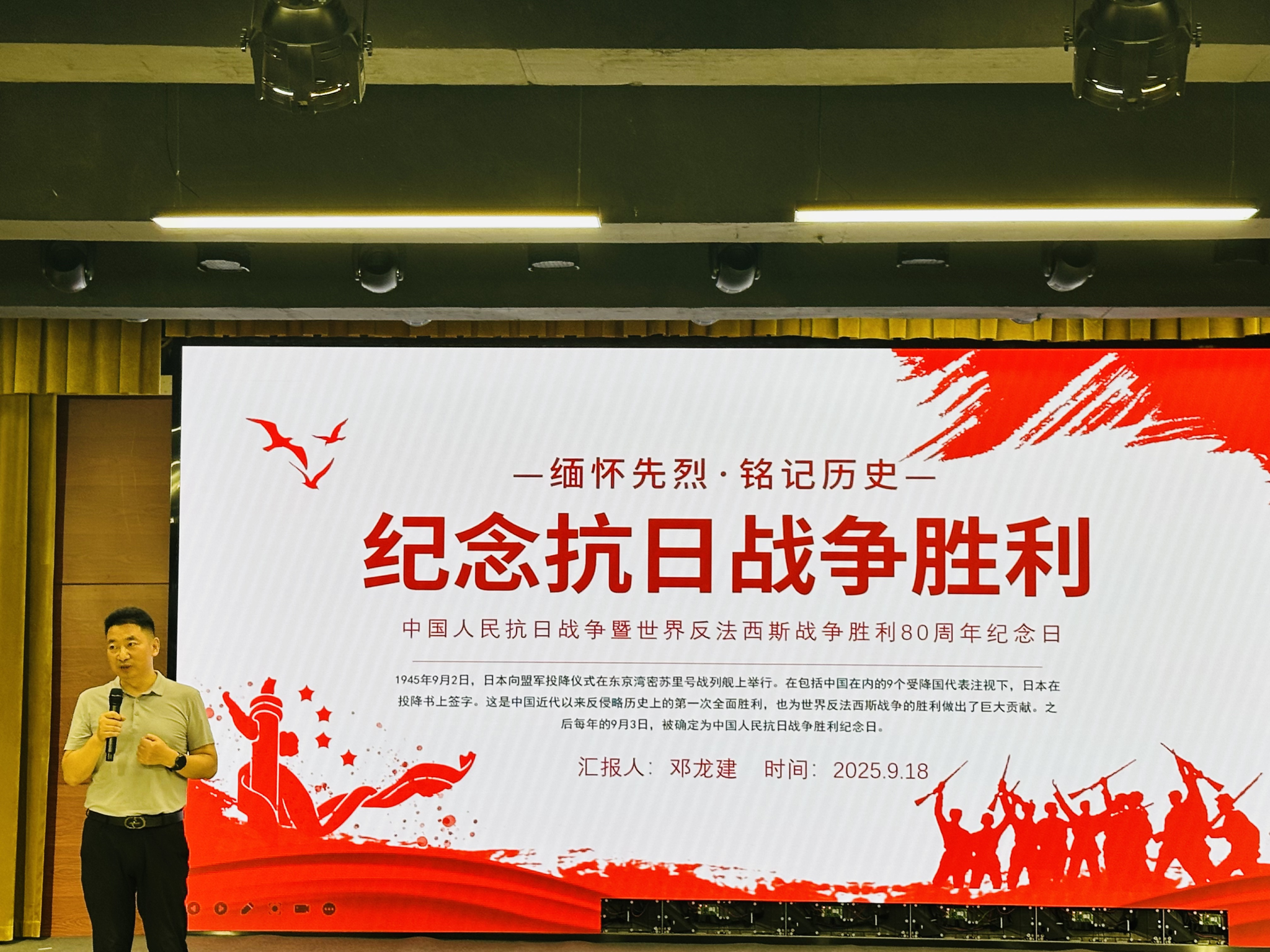 党课伊始,邓龙建以《中国人民抗日战争暨世界反法西斯战争胜利80周年纪念日》为主题,带领师生共同回溯了那段全民族救亡图存、共赴国难的峥嵘岁月。他深情指出,抗日战争是中华民族近代以来全民族共同奋起抵御外侮的伟大斗争,凝结了无数先烈为争取民族独立与自由而展现出的视死如归、百折不挠的伟大精神。邓院长强调,这段悲壮而辉煌的历史,是镌刻在我们民族灵魂深处的共同记忆,更是激励我们在新时代砥砺前行的强大精神动力和宝贵精神财富。