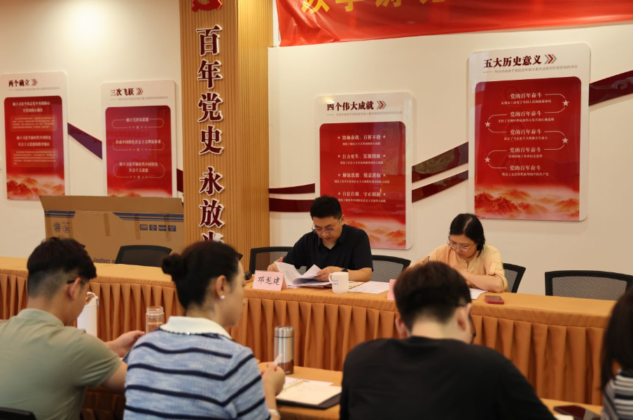 【文/ 易楠倩 图/ 杜格】7月11日下午,马克思主义学院在2213召开理论学习中心组学习会议,党总支书记邓龙建主持会议,学院党总支委员参加了本次会议。