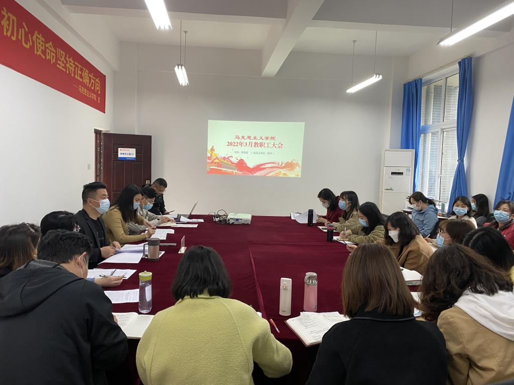 【文/顾婷 图/顾志飞】3月30日下午,马克思主义学院在2210召开3月教职工大会。会议由学院党总支书记、院长邓龙建主持,全院教职工参加会议。