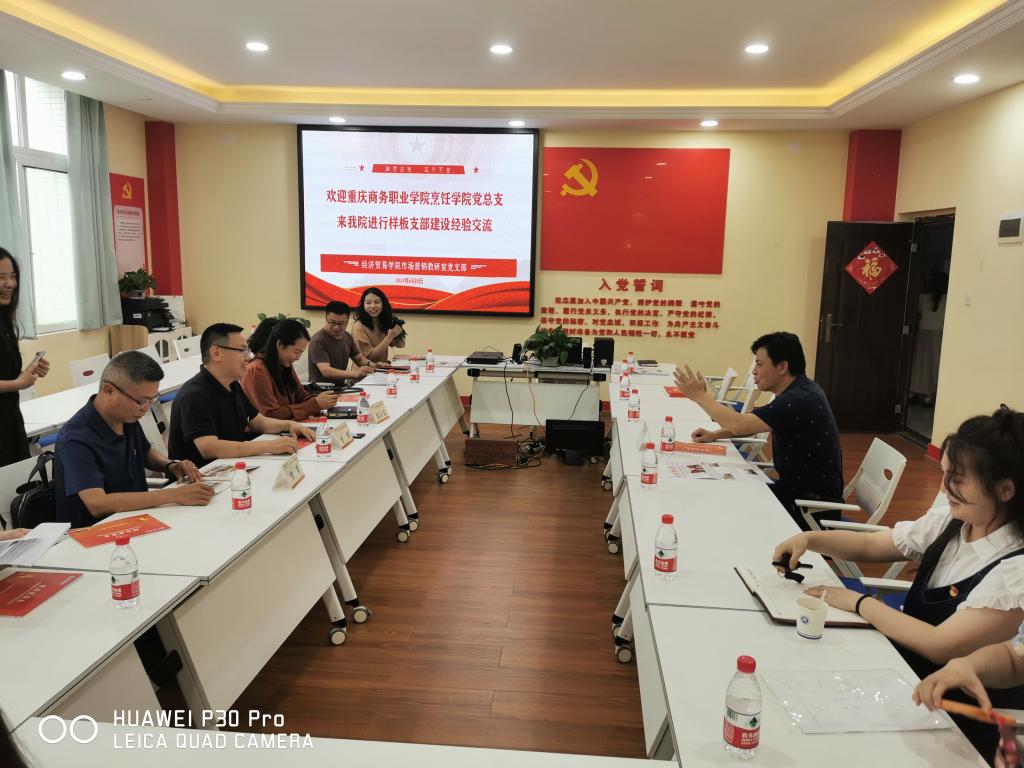 会议首先前往经济贸易学院开展“全市党建工作样板支部”观摩交流活动,与会人员实地观摩了样板党支部建设成果展和市场营销教研室办公室。市场营销教研室党支部同志围绕“七个有力”向大家介绍了党支部建设情况及党建文化。观摩结束后,学院与经贸学院进行了座谈,分别从样板支部申报、建设情况等方面作了交流,分享了创建样板支部的经验做法和下一步的工作思路。