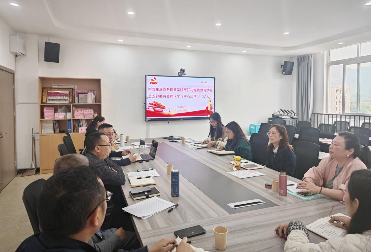 4月8日,烹饪与继续教育学院党总支在3412党建活动室开展第二次理论学习中心组学习,会议由党总支书记李伟主持,党总支班子成员及科级干部参加了学习会。