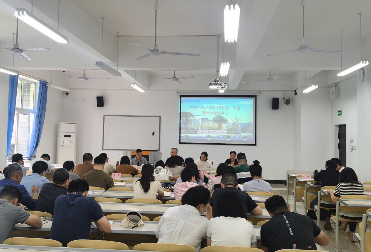 5月28日下午14:00,烹饪与食品学院在2226教室开展5月教职工大会暨政治理论学习。副校长、烹饪与食品学院党总支书记、院长李焱以及党政领导班子成员、全体教职工参加了本次大会,会议由烹饪与食品学院党总支副书记陈小容主持。