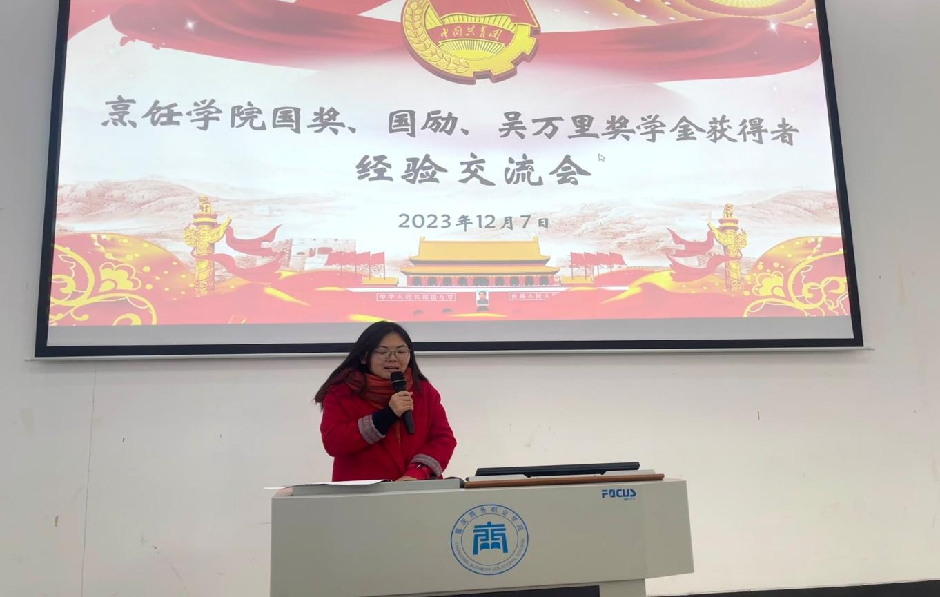 为了充分发挥先进典型的激励、导向功能和示范引领作用,烹饪学院于2023年12月7日中午在1117阶梯教室举行了“领航计划”暨国家奖学金、国家励志奖学金、吴万里烹饪公益奖学金获得者经验交流会。烹饪与继续教育学院团总支书记邵玉华、国家奖学金、国家励志奖学金、吴万里烹饪公益奖学金获得者代表以及2022级、2023级学生代表出席交流会。交流会由烹饪与继续教育学院团总支学生副书记王圣平主持。
