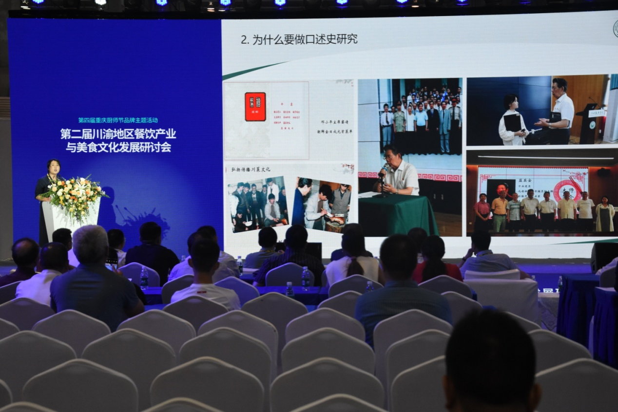 会议主题报告由重庆市渝菜烹饪研究院秘书长石自彬主持。蓝勇、郝毅然、喻春喜、谢天慧、毛新宇等20位来自高校、行业、企业的专家学者代表作了主题报告,分享了巴蜀饮食文明研究最新成果,建言川渝餐饮产业发展、美食文化研究、餐饮人才培养,为成渝地区双城经济圈建设、为人民群高品质美好生活和川渝餐饮产业高质量发展建言献策,贡献学者智慧、学术力量。