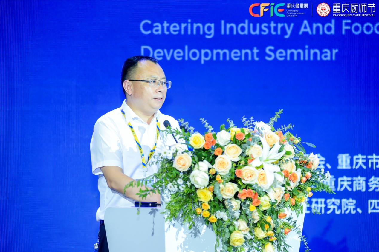 王顺海在致辞中表示,本次研讨会丰富了第四届重庆厨师节活动内容,加强了行业、产业、教育、学者之间的联通互鉴,思想碰撞和成果交流可以启发多更新思维、产生更多新成果,以饮食文化研究赋能餐饮产业发展,助力乡村振兴和实现共同富裕。保障从“泥巴”到“嘴巴”的食品安全,是餐饮经营者始终如一的使命职责。新质生产力发展时期,餐饮企业应转型向“三降”“三轻”“三重”模式发展。希望与会代表通过学术交流,形成更多促进服务行业发展的真知灼见,在成渝双城经济圈建设中发挥我们餐饮人的独特优势作用。